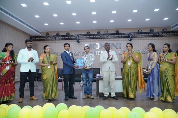 The event was presided over by Mr. K. Neel Marthandan, Chairman of the college. Dr. N. Neel Vishnu, Vice-Chairman, Dr. V. M. Blessy Geo, Managing Director, Dr. R. Rajesh, Principal, and Dr. M. Reji, Head of the Department of Electronics and Communication Engineering, participated in the program and delivered felicitations to the students. The chief guest of the event was Mr. Prudhivi Sivaprasad, Scientific Officer – F and Officer In-charge (IT), Nuclear Power Corporation of India Limited (NPCIL), Kudankulam. He delivered a special address on current trends in technological development and elaborated on the contributions expected from engineering students in the modern era.
